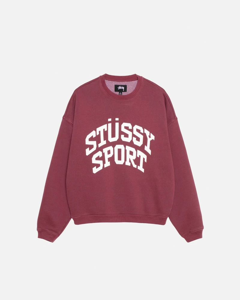 oversized crewneck sweatshirt in a heavy 15.8oz cotton blend. stüssy sport arch logo with a crackle effect printed across the front. - longsleeve - ribbed neck, cuffs and hem - runs large - dropped shoulder - unisex - main material: 66% cotton / 34% polyester - imported