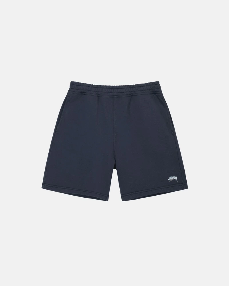 piece dye cotton fleece sweatshort. - elastic waistband with flat drawcord - on-seam welt pockets - single back patch pocket - stüssy stock logo embroidery on left leg - 7" (17.8cm) inseam - relaxed fit - unisex - 80% cotton / 20% polyester - imported