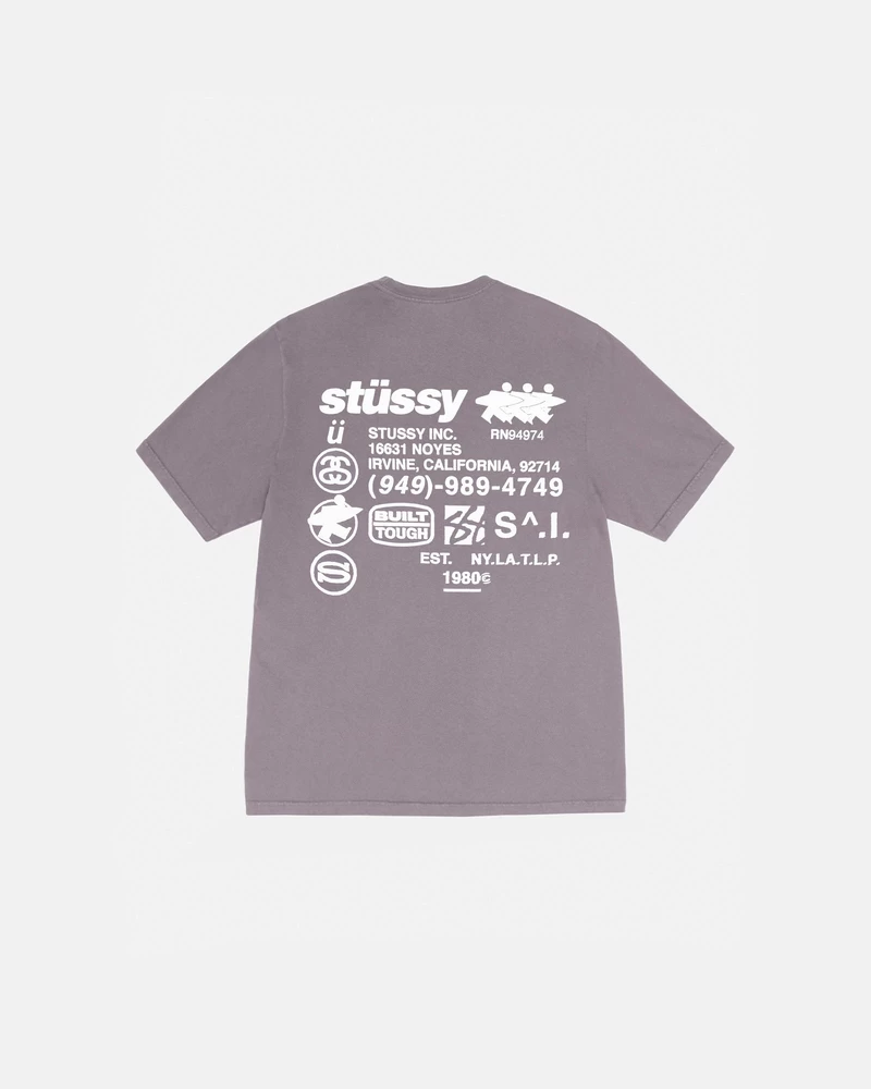 oversized pigment dyed tee in midweight 6.5oz cotton jersey. features screenprinted graphics. - shortsleeve - ribbed collar - runs large - unisex - material: 100% cotton - imported *this garment has been individually dyed, producing a one-of-a-kind result. color may fade or bleed after wash.