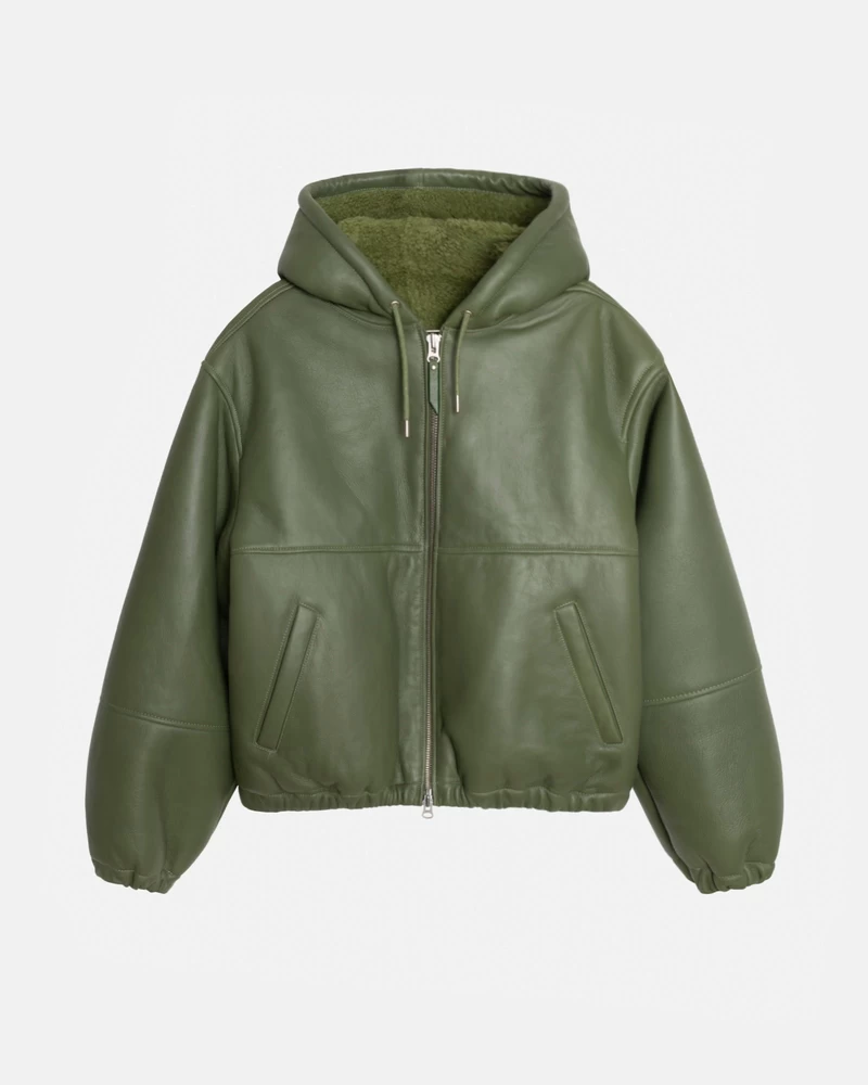 ژاکت کار چرم دانه نرم با آستر پشمی. - هود طناب کشی - بسته شدن زیپ فلزی دو طرفه Ykk # 8 - جیب های مورب - سرآستین و سجاف الاستیک - برچسب لوازم کار ثابت روی درز جانبی - تک جنسیتی - 100% چرم - آستر: 100% پشم گوسفند برشی - وارداتی