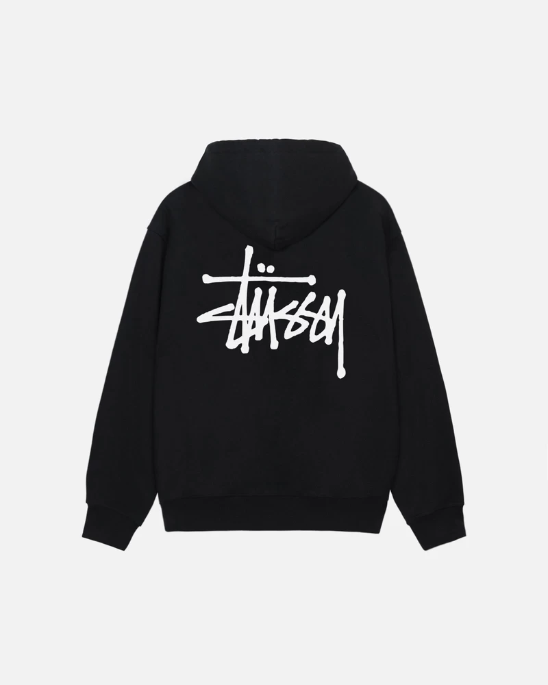 oversized hooded sweatshirt in a heavy 12.7oz cotton blend. screenprinted stüssy basic stock logo. - round drawcord in hood - ribbed cuffs and hem - kangaroo pocket - relaxed fit - unisex - material: 70% cotton / 30% polyester - imported